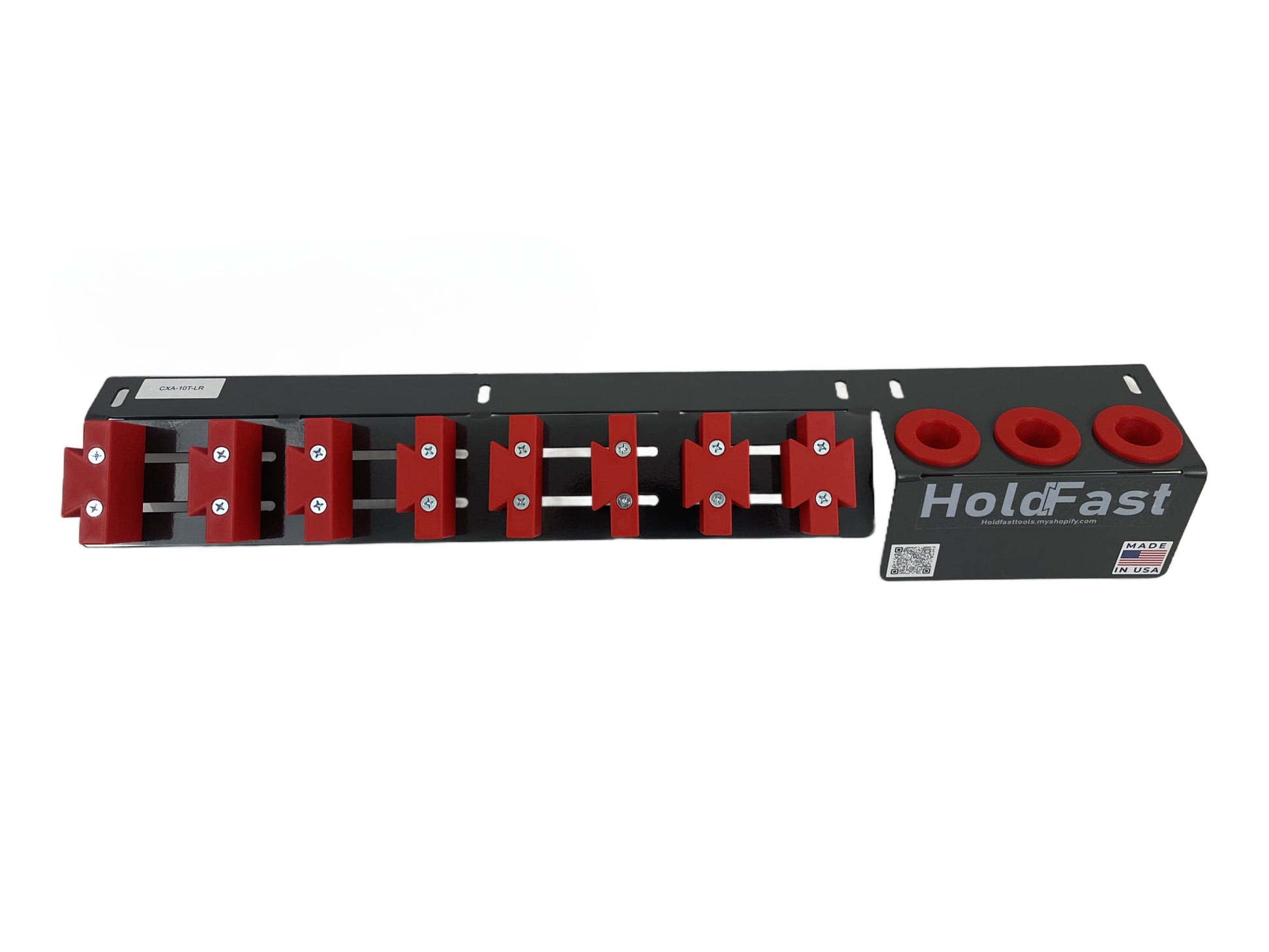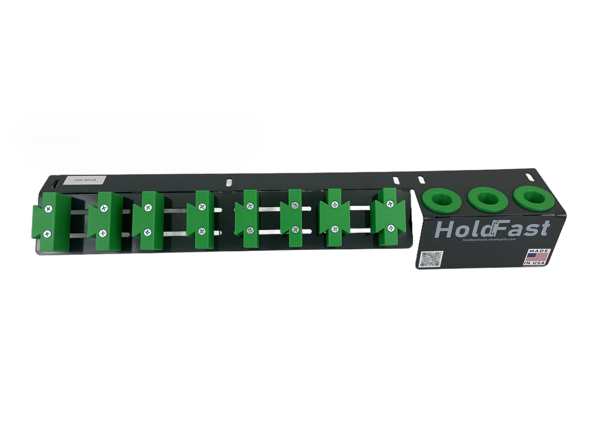 HoldFast, BXA lathe tool racks can hold 3 Morse Taper tailstock tools, and 8-12 quick change tools depending on tool size and brand. Tool racks are fabricated out of 12-gauge (0.1046") steel with an industrial powder coat finish. Quick-change tool holders, and tapered tailstock tool sockets are produced from high quality 3D prints which provide excellent strength, and impact resistance while protecting the precision surfaces of your lathe tools when being stored.